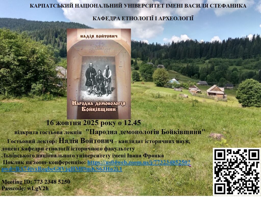 16 жовтня 2025 року о 12:45 запрошуємо на відкриту лекцію “Народна демонологія Бойківщини”.